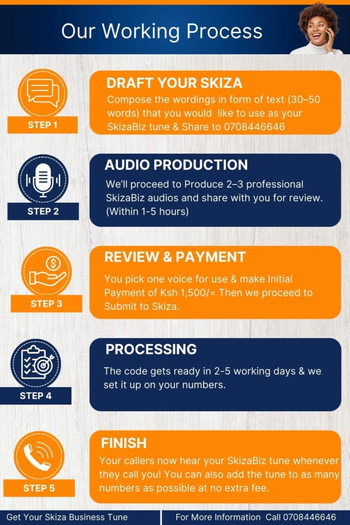 We are passionate about helping businesses grow by creating customized Skiza Business Tunes. We work closely with our clients to develop customized skiza tunes that align with their brand identity and marketing goals. Our custom skiza business tunes ensure that businesses connects with their customers in a memorable way. Whether you are a start up or an established brand, our innovative personalized skiza tune solutions set you apart from the competition.